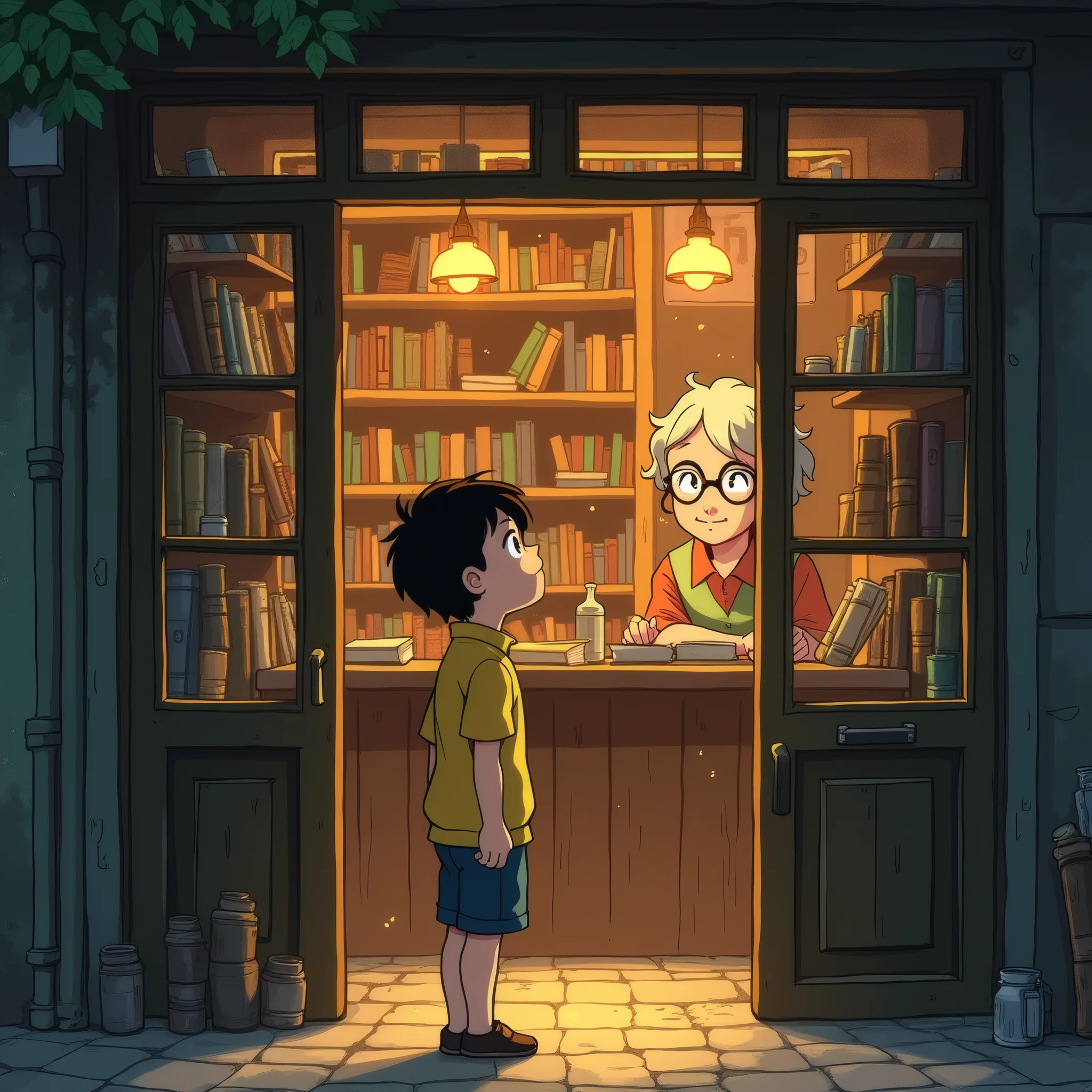 Kid discovering a hidden bookshop